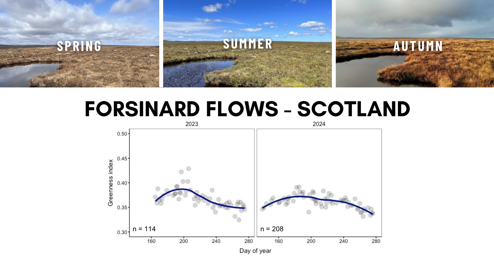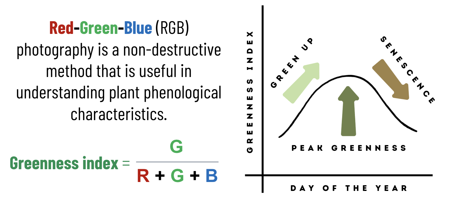 We can use smartphone RGB photos to understand how these plants ‘green up‘ over the summer, the timing of when they hit their maximum greenness and how they start to turn brown in the autumn.
