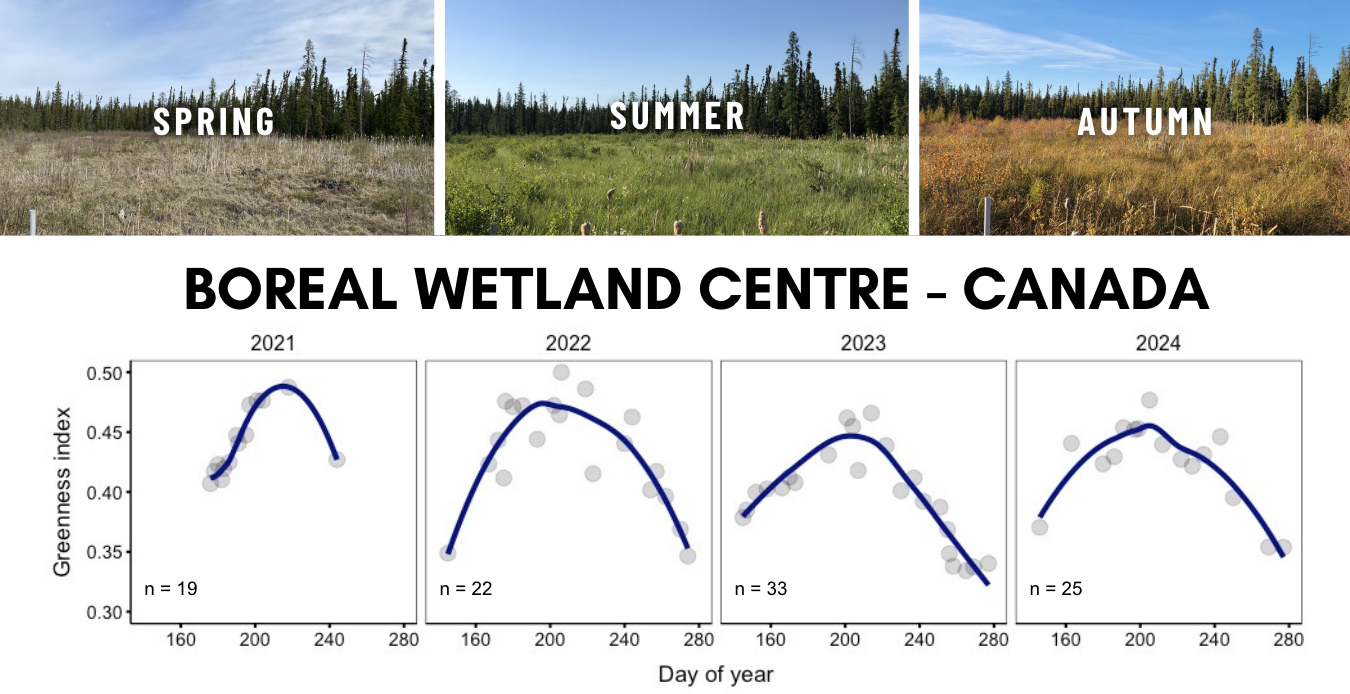 GREENNESS INDEX FOR BOREAL WETLAND CENTRE BETWEEN 2021 AND 2024